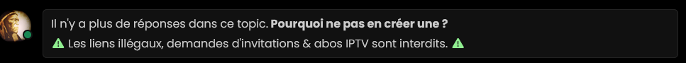 @lordinho c’est pas ça qui a fait sauter ton message, il est spécifié sur le site que les liens illégaux et le demandes d’invitation sont interdits. (en home page sous le carrousel)
