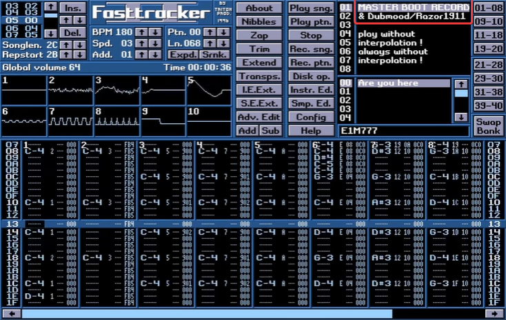 Dubmood & MBR : il existe sur YouTube un installer soundtrack intitulé « Dubmood & MASTER BOOT RECORD - Comply (Razor 1911 installer soundtrack) ».